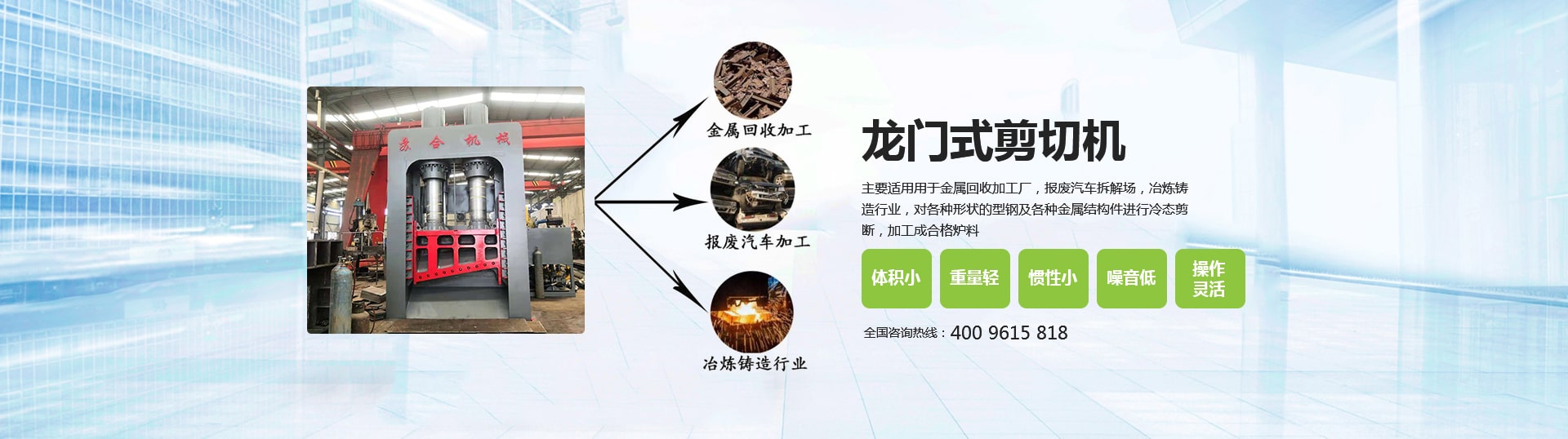 廢鋼回收是國家倡導(dǎo)的綠色循環(huán)產(chǎn)業(yè),其中對廢舊鋼材的二次分割則有多種形式,其中廢鋼剪切機是加工廢鋼的主要設(shè)備,廣泛用于對各種報廢的......